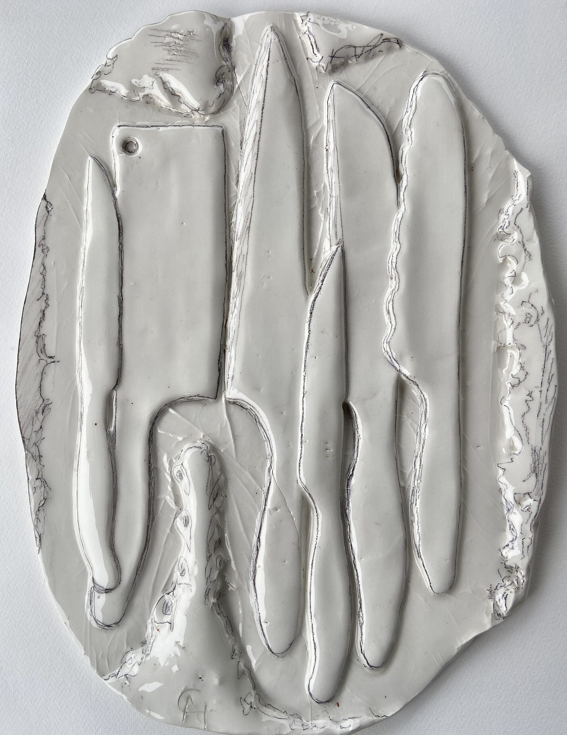 Los cuchillos en panoplias, como si abriéramos un cajón y estuvieran allí.